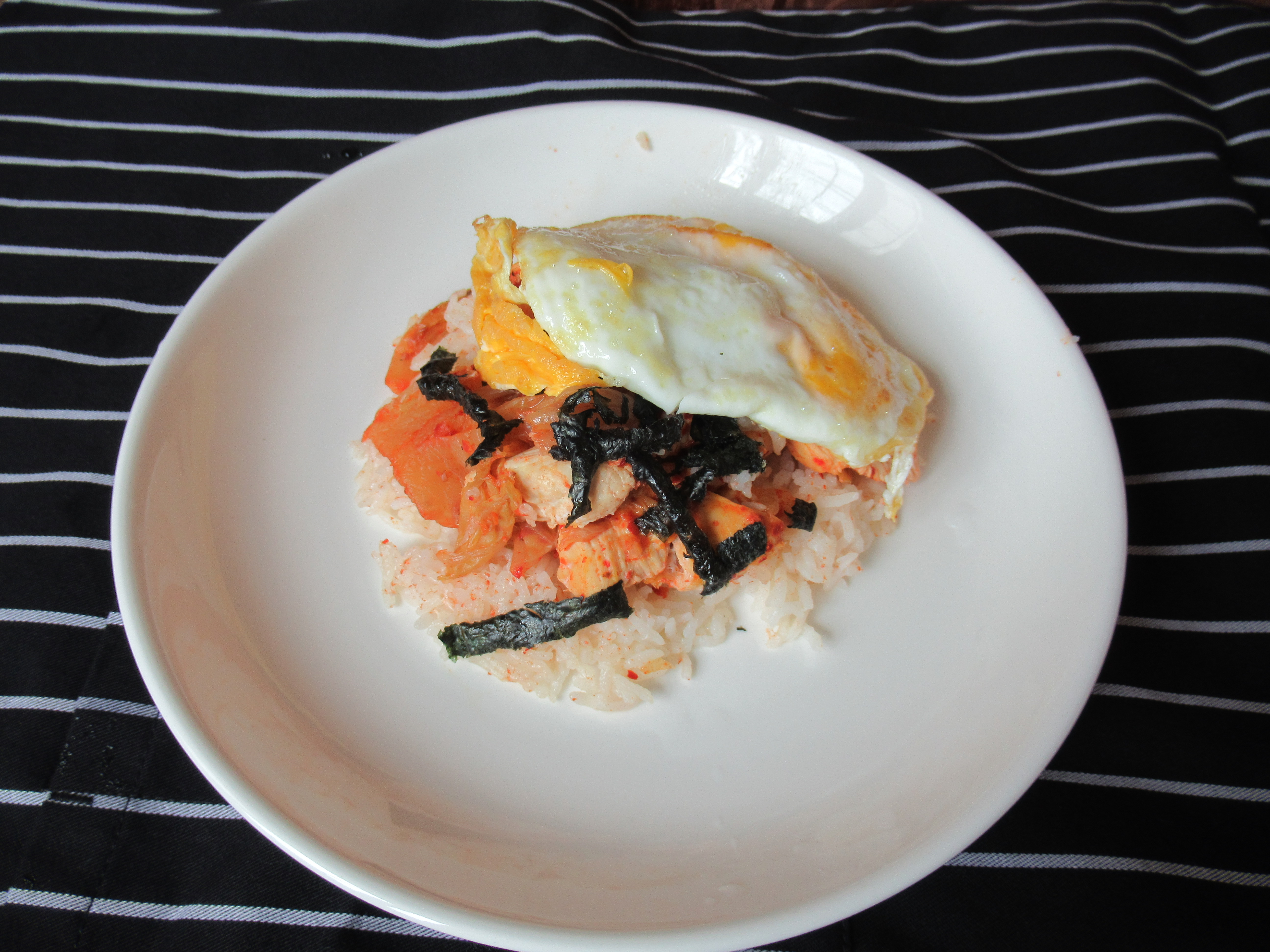 Making lunch for myself, using the electric lunch box to steam chicken drumstick with flower cordyceps, mushroom and wolfberries, steamed an egg and rice and make a seaweed soup.